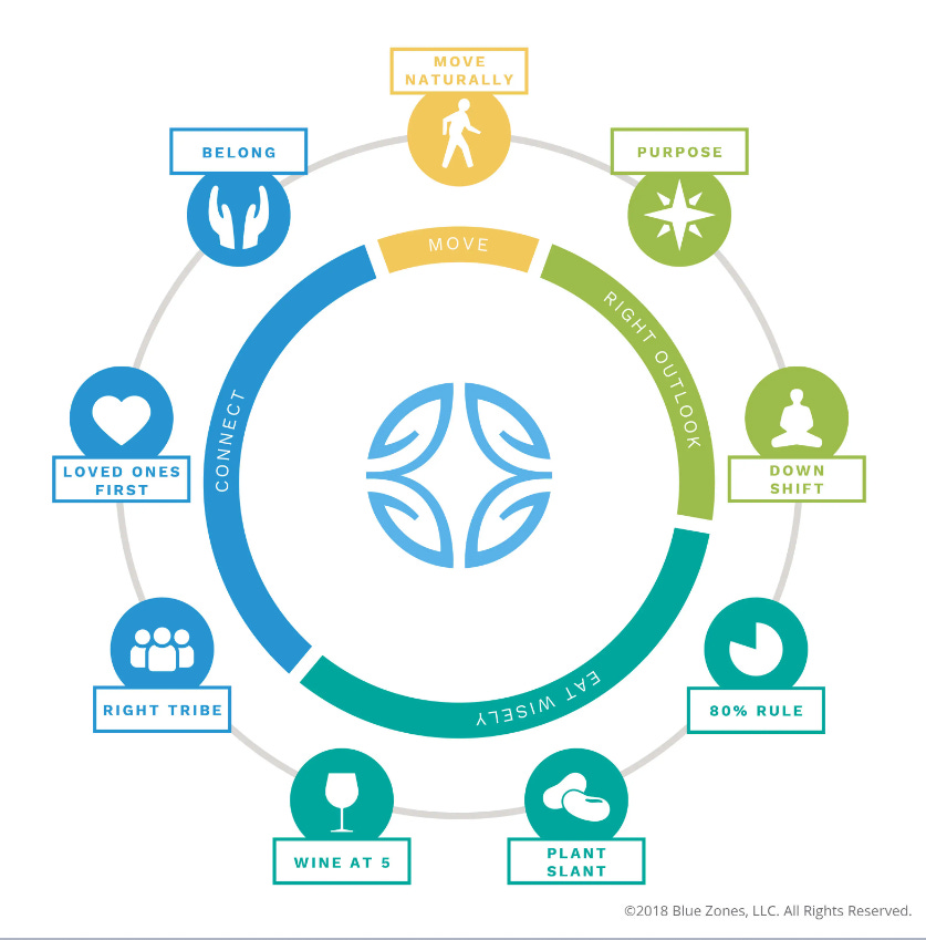 Along with the plant based diet and the moderate alcohol consumption, these characteristics make up the “power 9”.