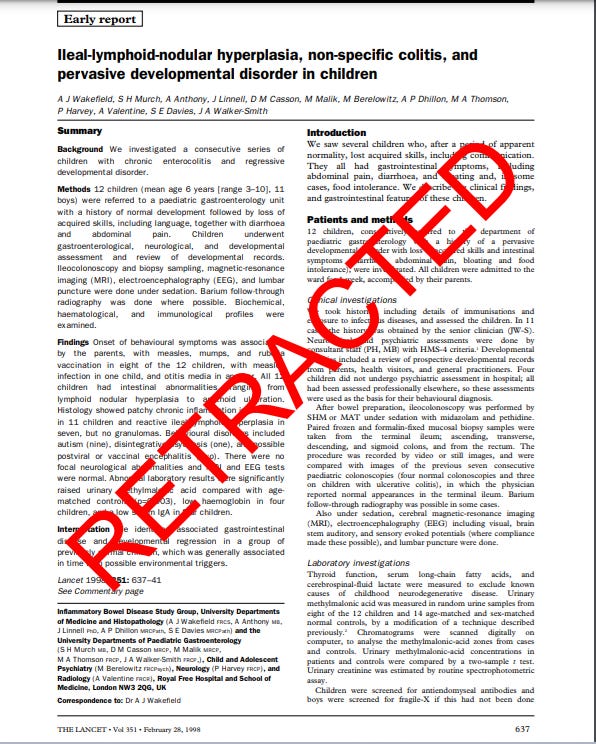 Back in 1998 when Mariah Carey wore ruched mini dresses and Titanic was #1 in the box office, Andrew Wakefield published a 5-page paper titled “Ilial-lymphoid-nodular hyperplasia, non-specific colitis, and pervasive developmental disorder in children” in the prestigious scientific journal The Lancet.